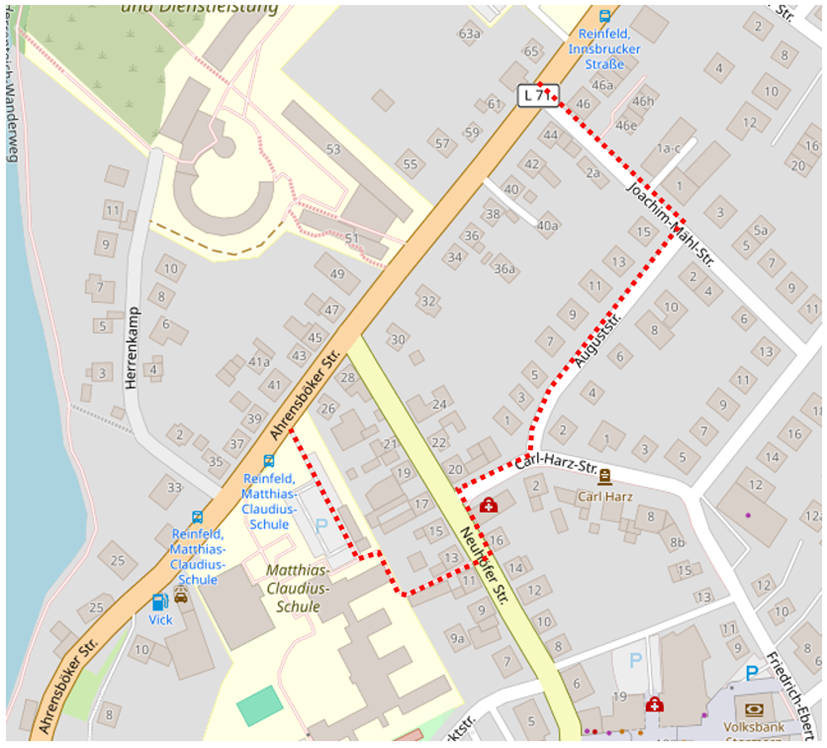 Hierfür wird in Höhe der Joachim-Mähl-Straße in der Ahrensböker Straße ein provisorischer Fußgängerüberweg hergestellt.